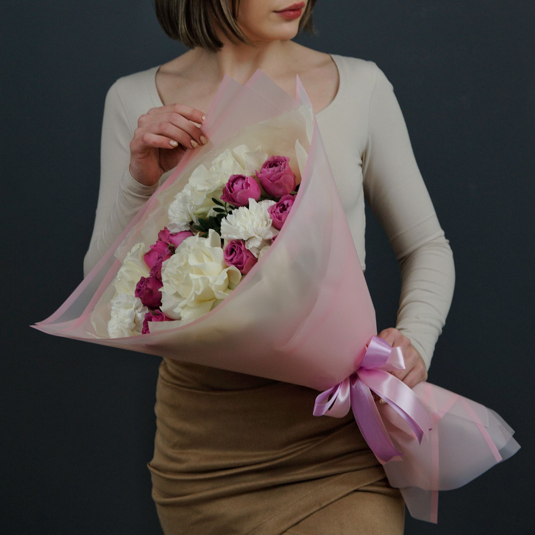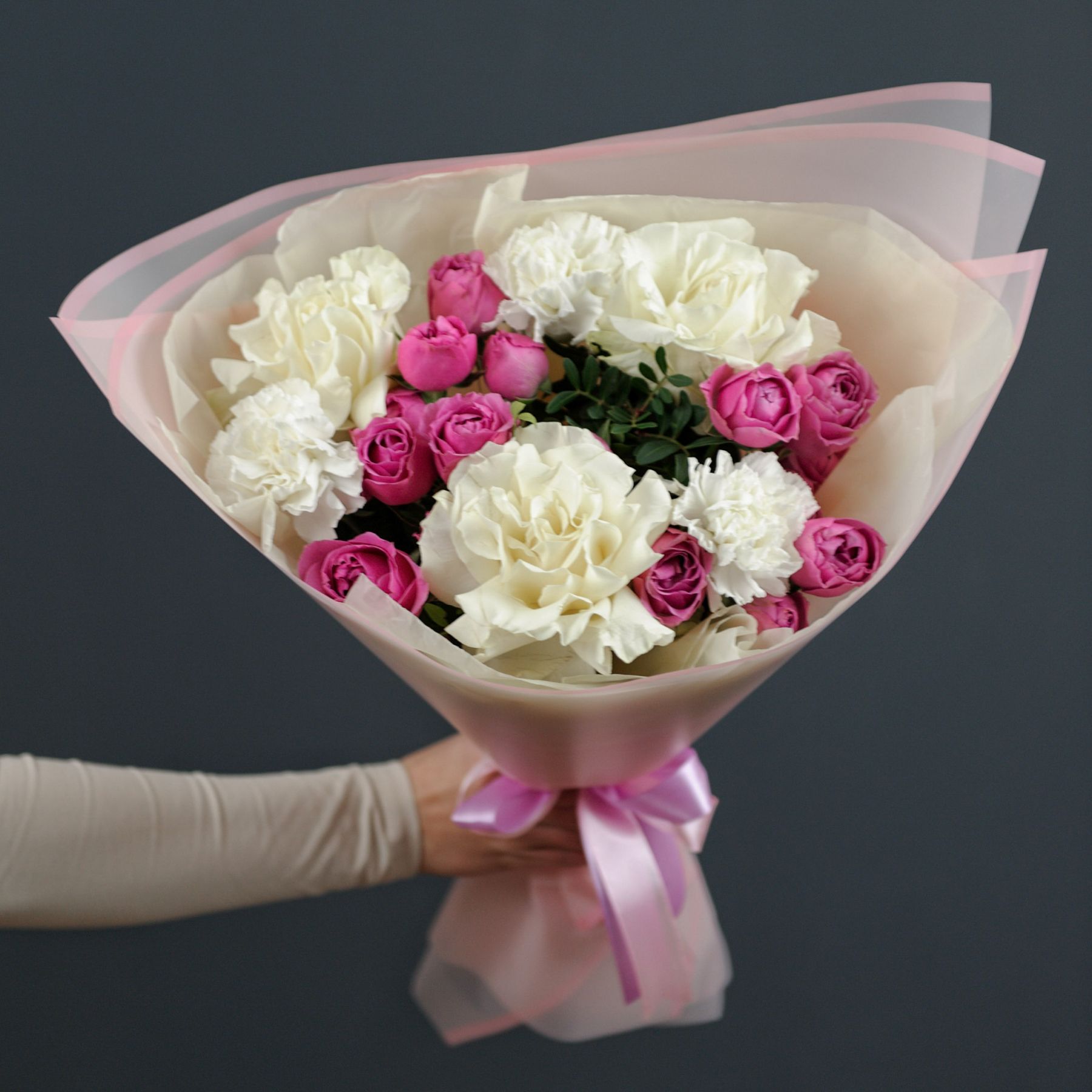 Авторский букет с кустовой пионовидной розой