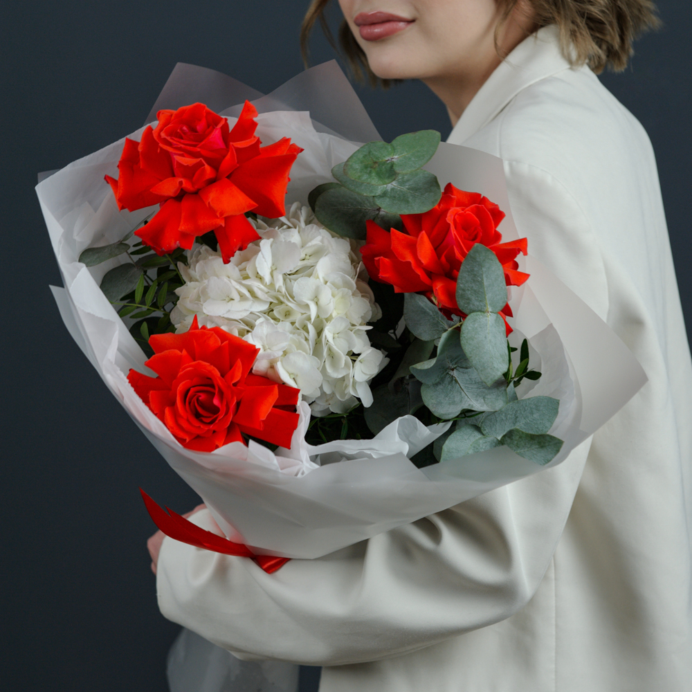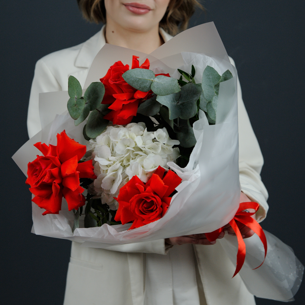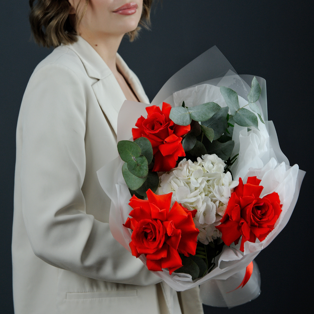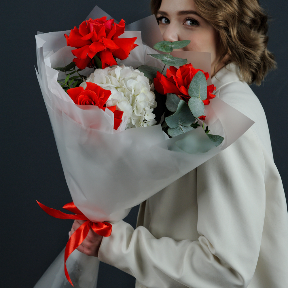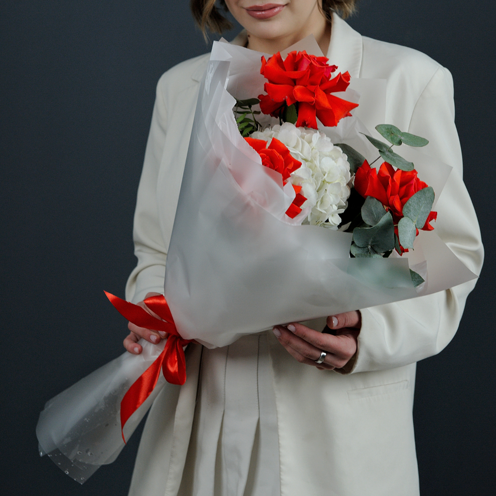Букет-комплимент с французскими розами и гортензией