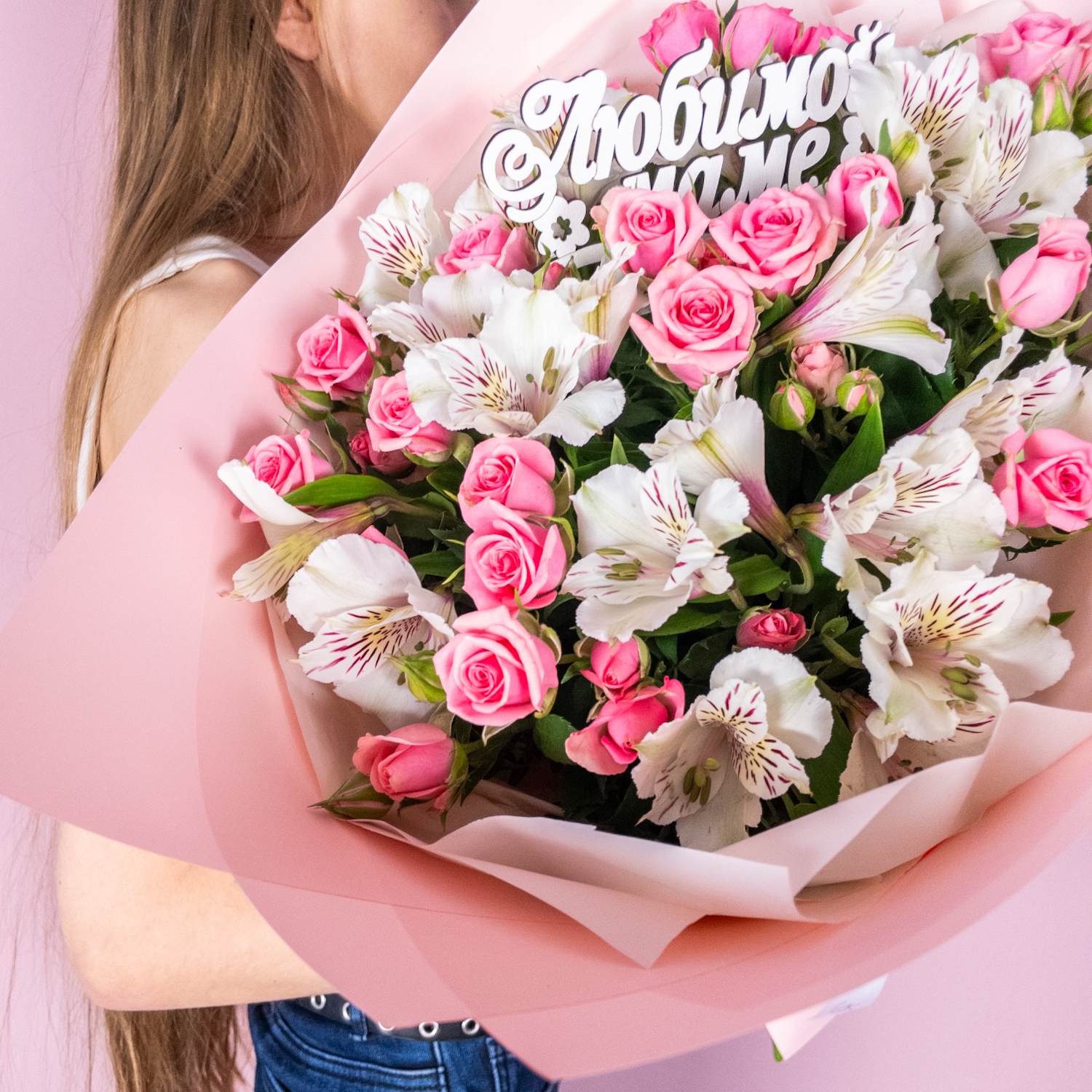 Нежный букет с топпером "Маме" – идеальный подарок...
