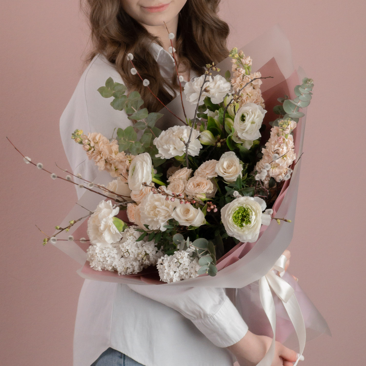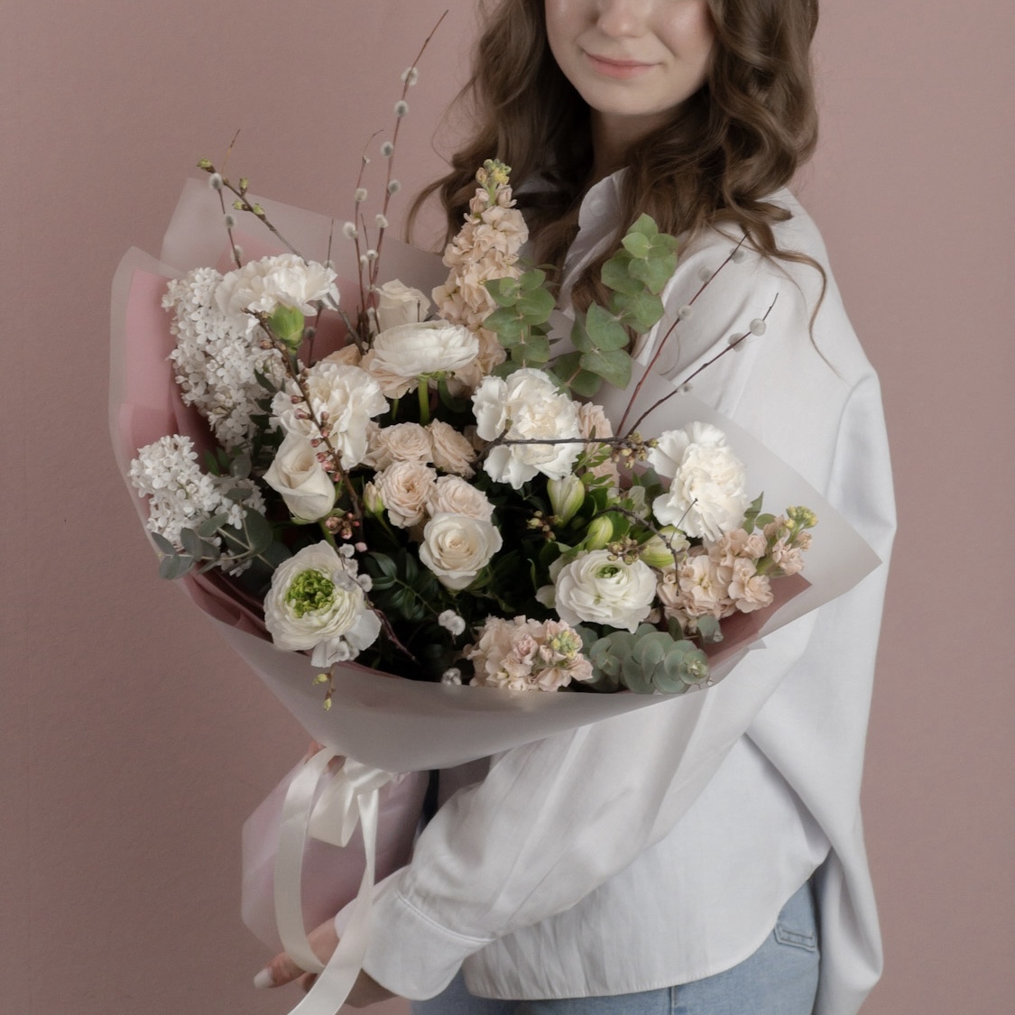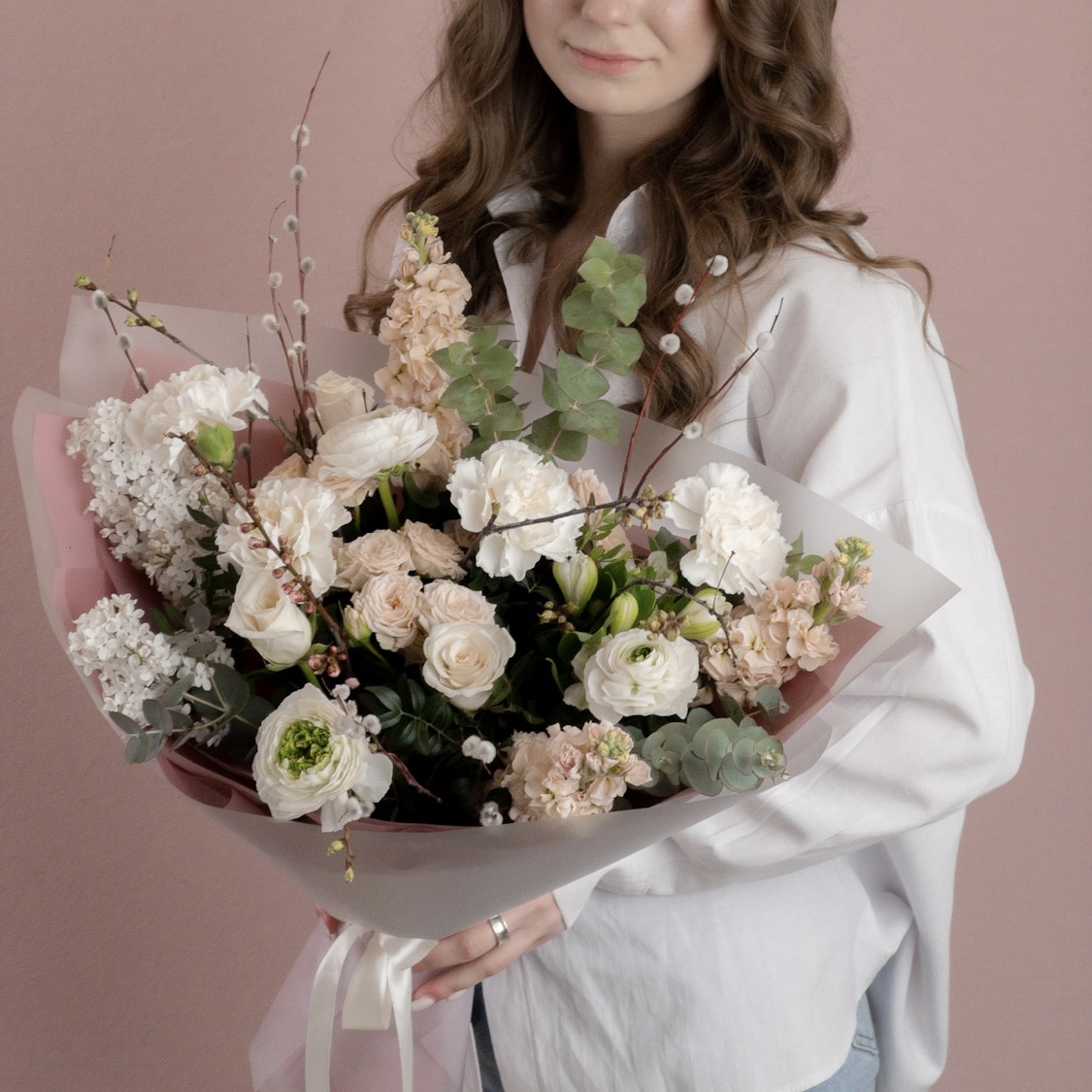 Изящный букет в бело-кремовых тонах – воплощение н...