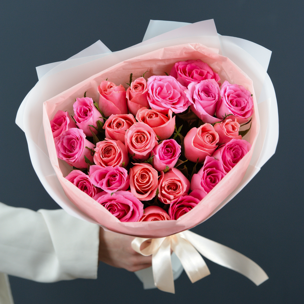 Роскошный микс из 25 нежно-розовых роз – воплоще...