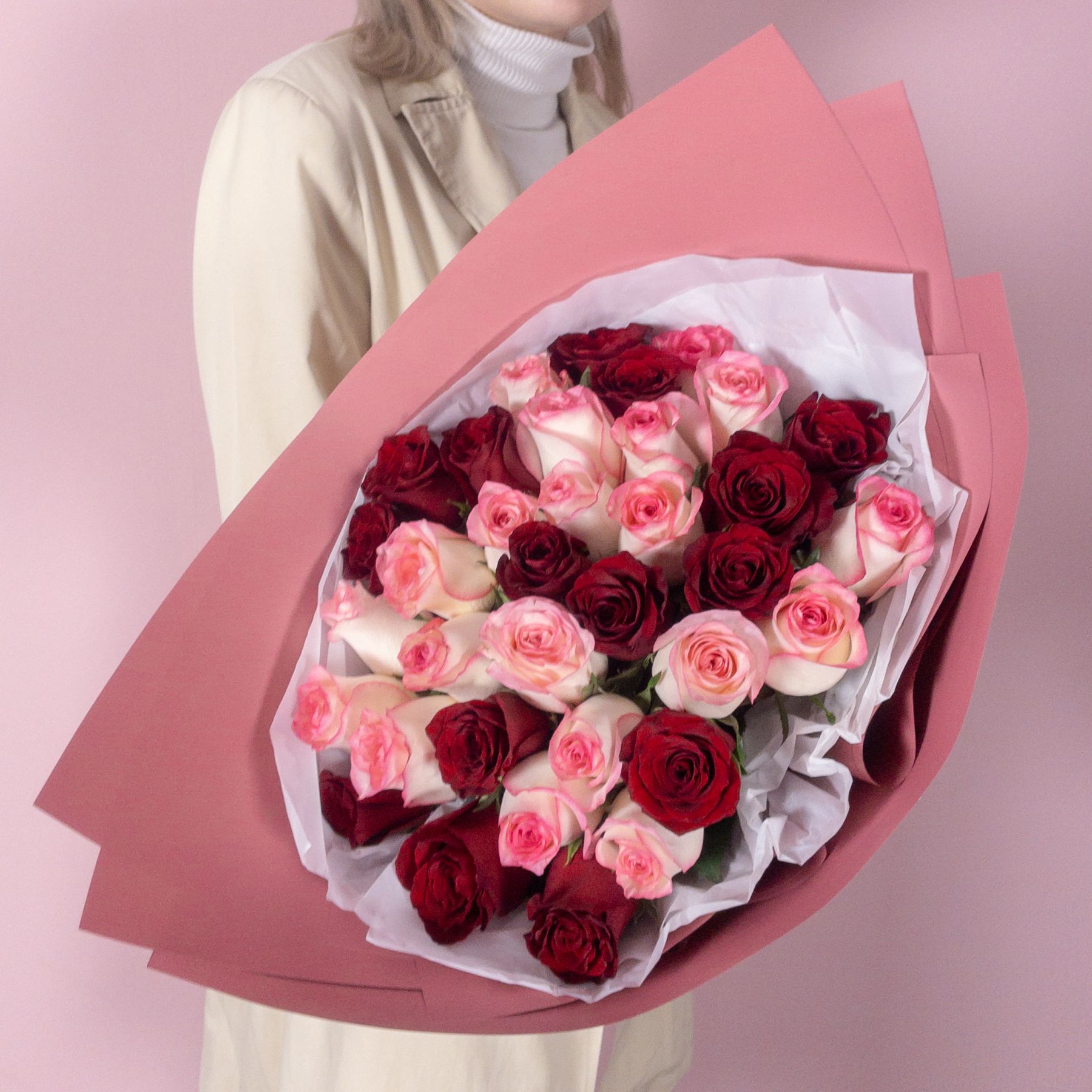35 красно-розовых кенийских роз
