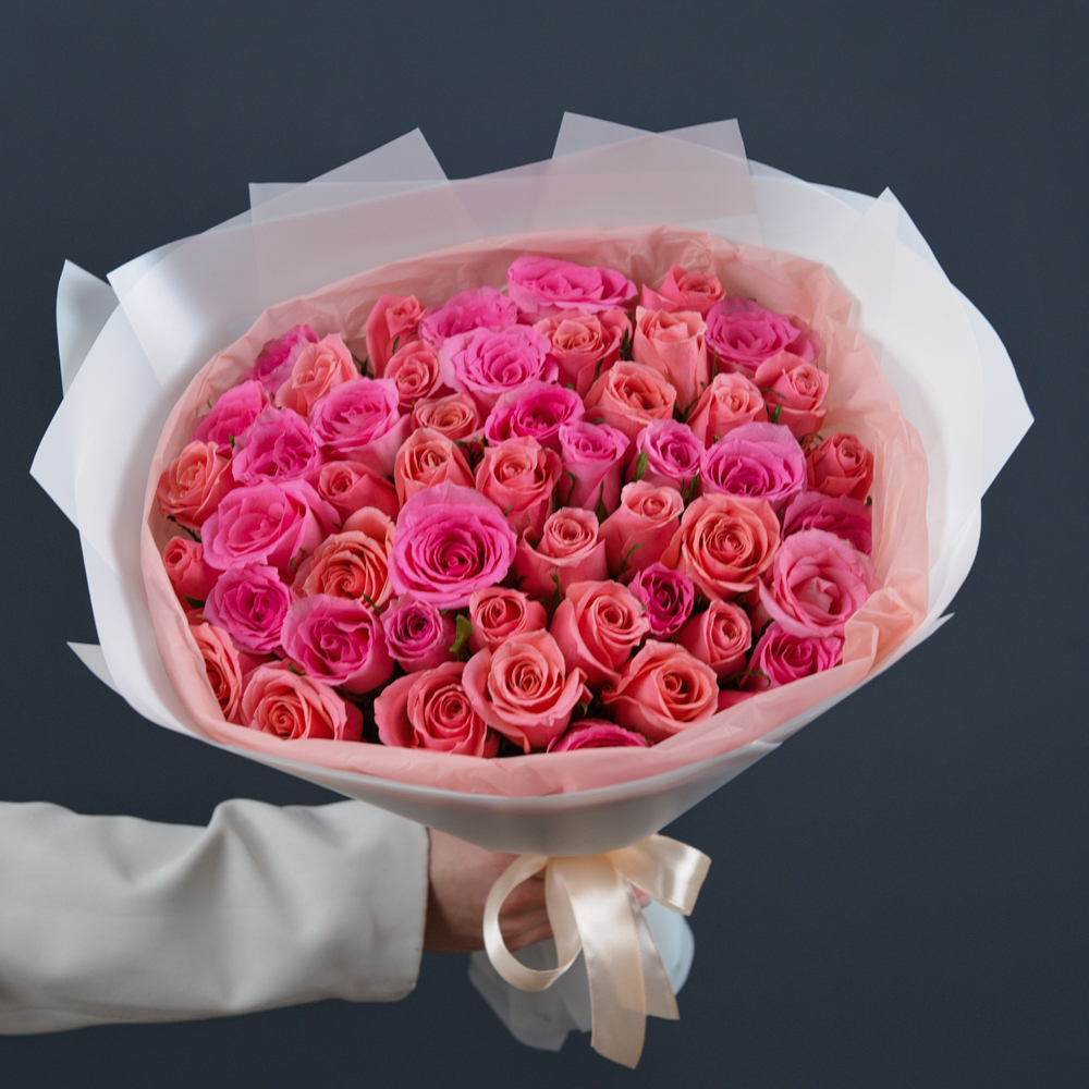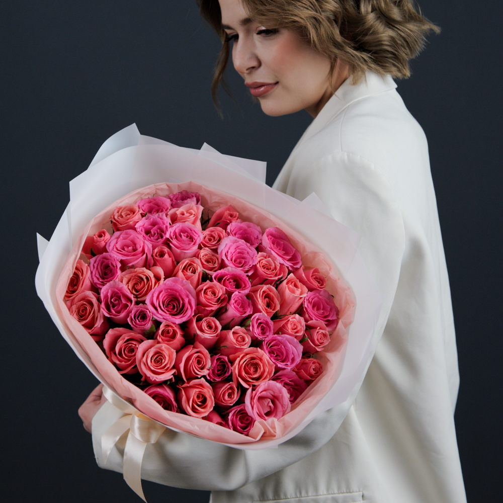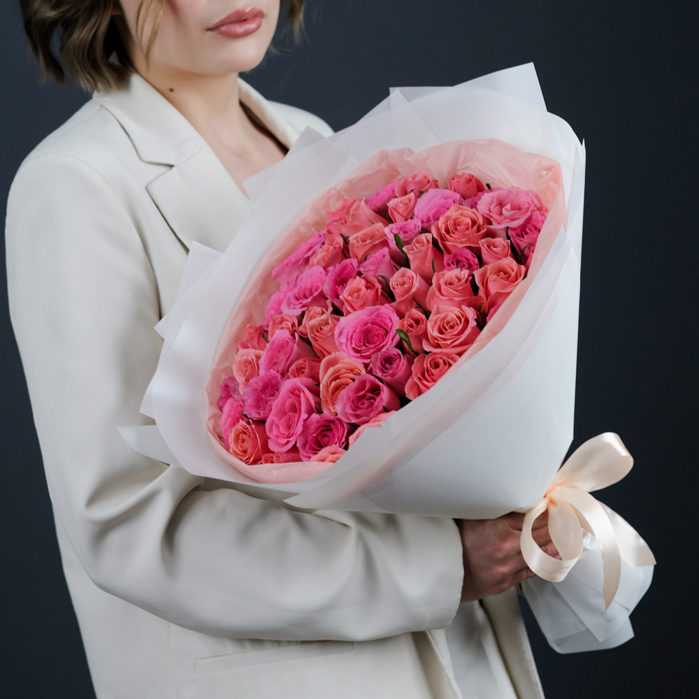 Роскошный букет "Розовый микс" – воплощение нежнос...