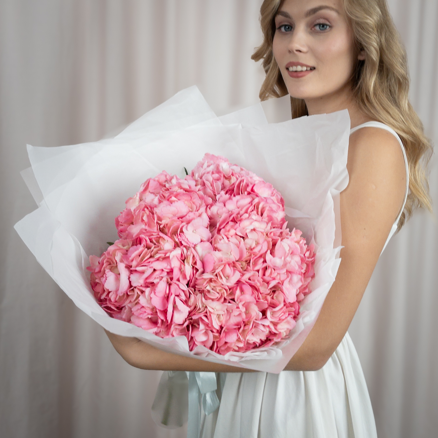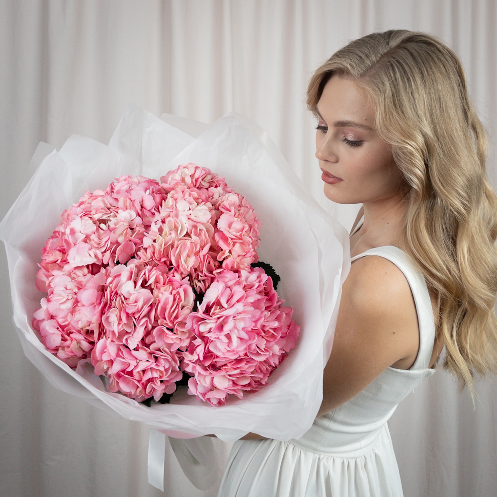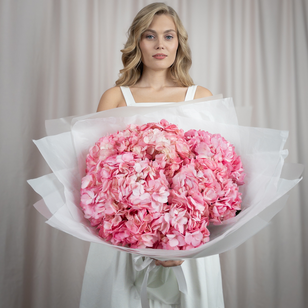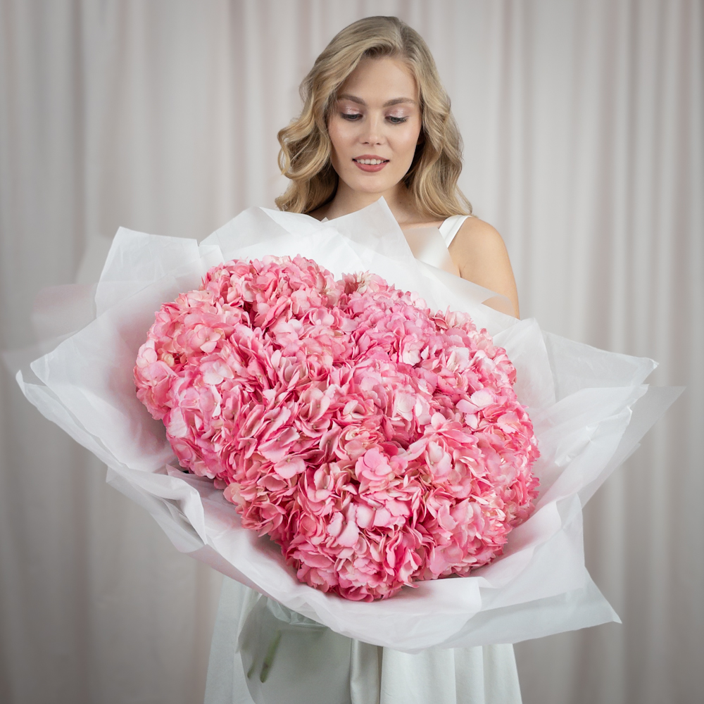 Роскошный букет из розовых гортензий: воплощение н...