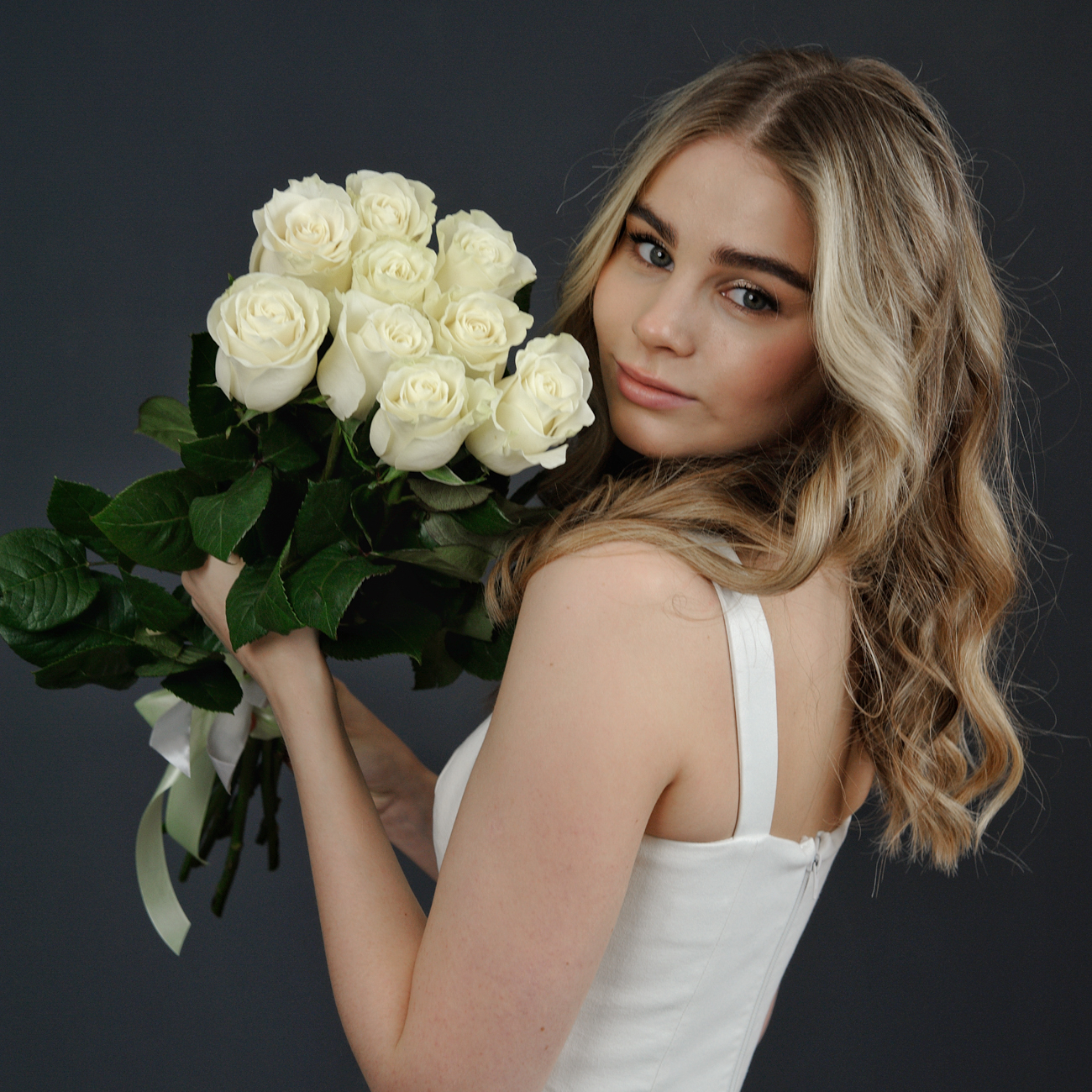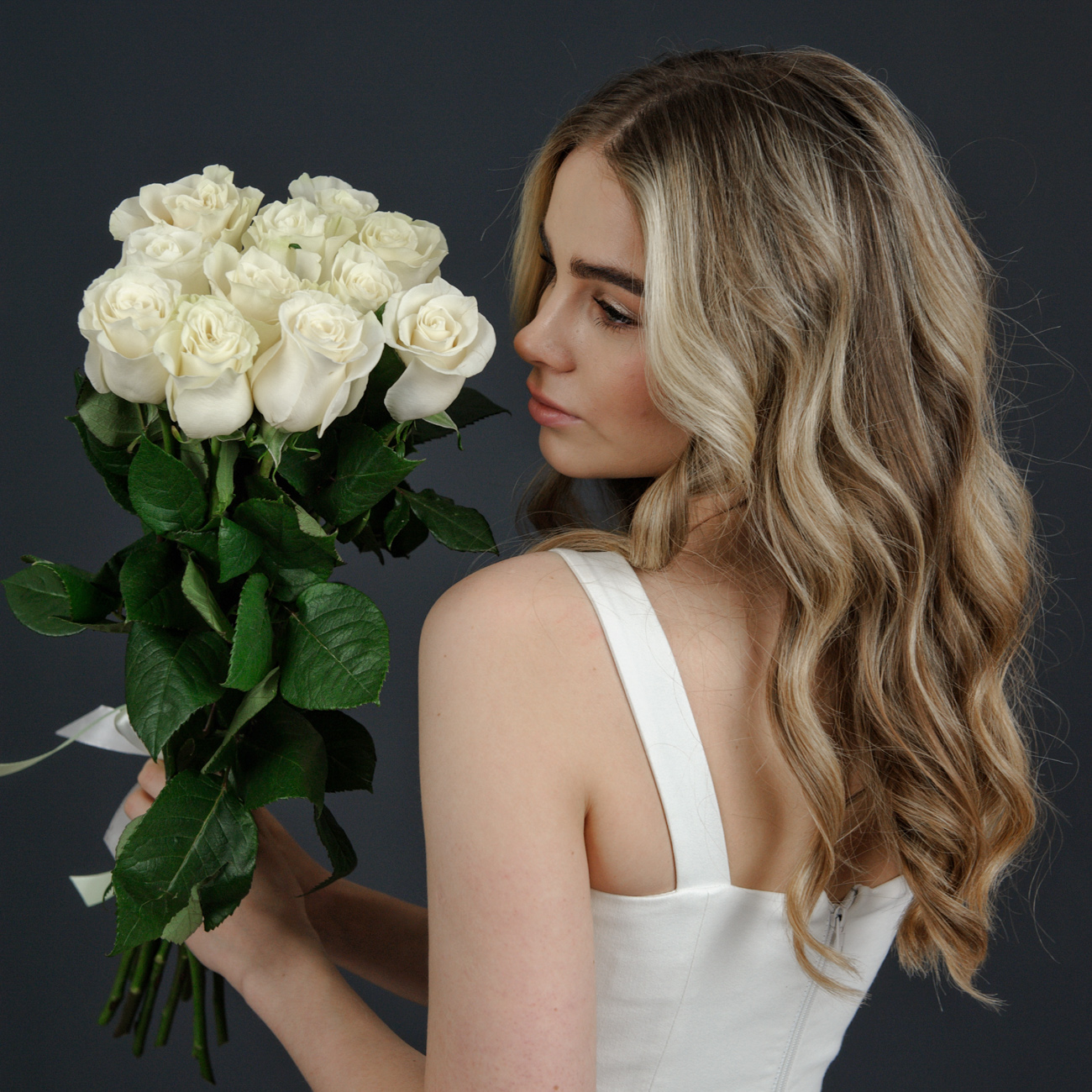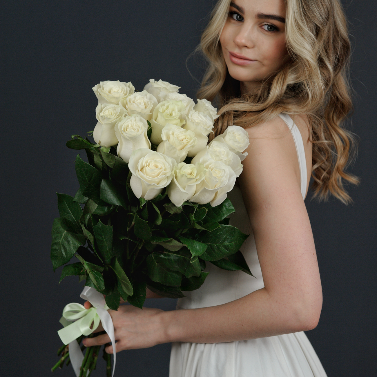 Розы белые "Мондиаль" 60 см