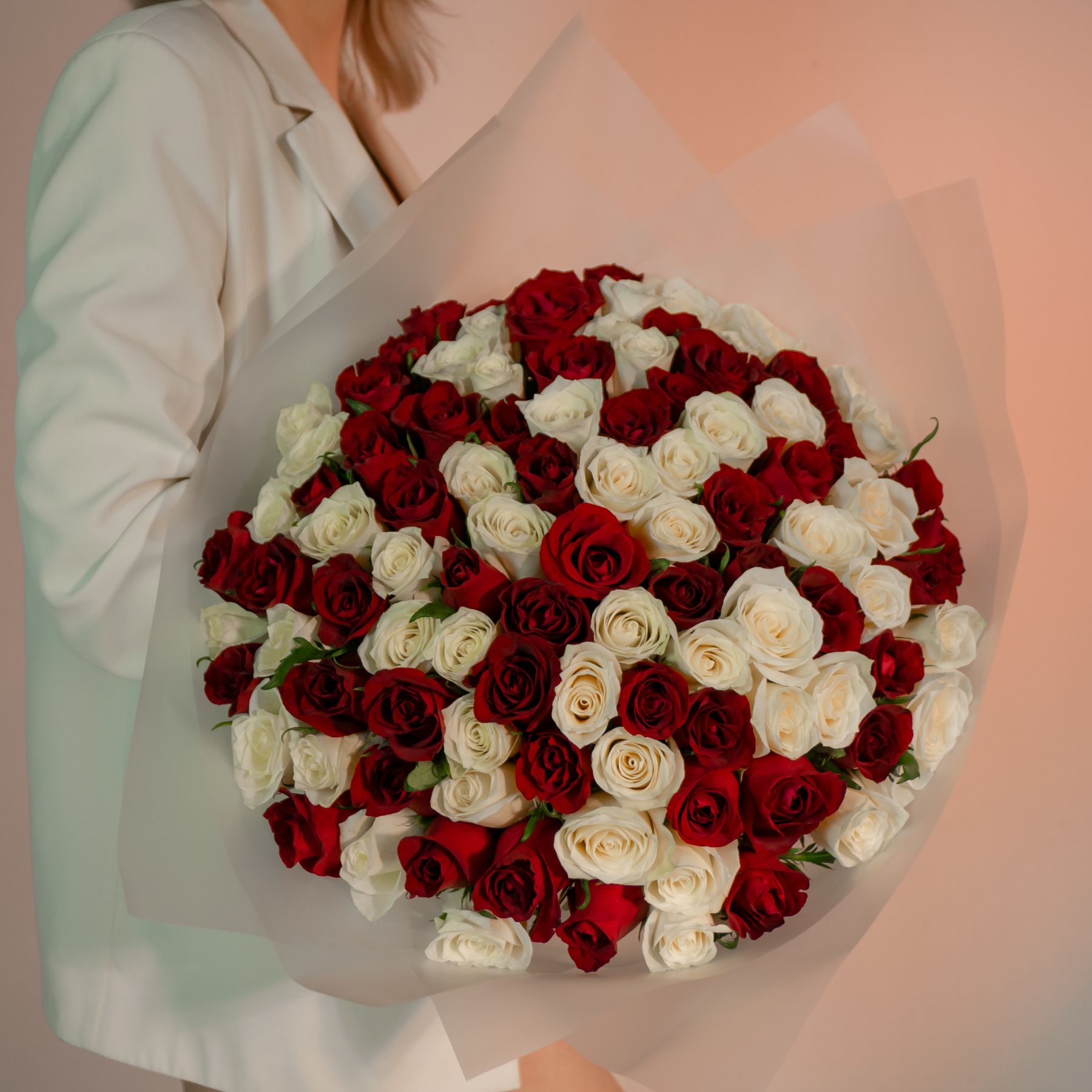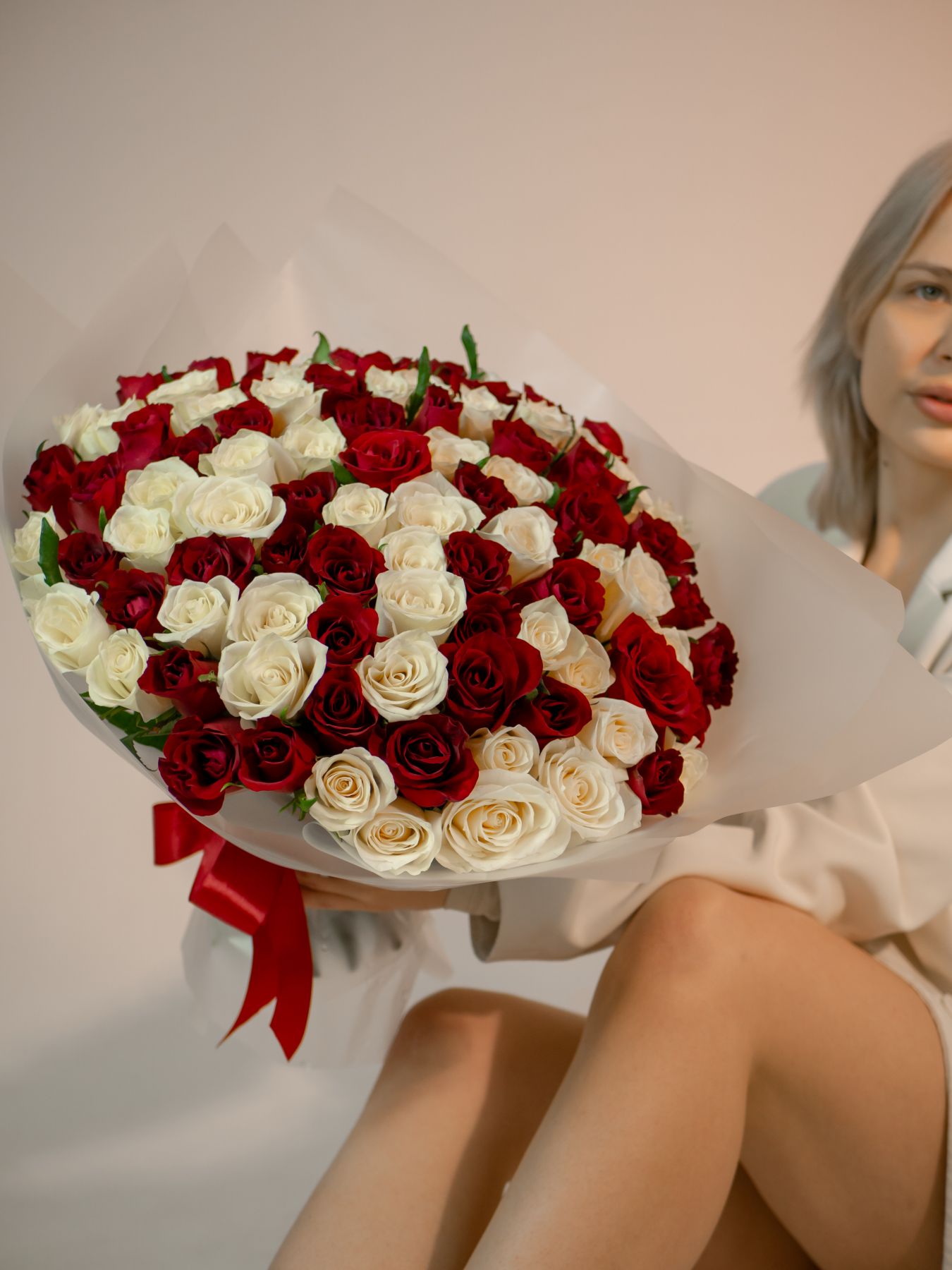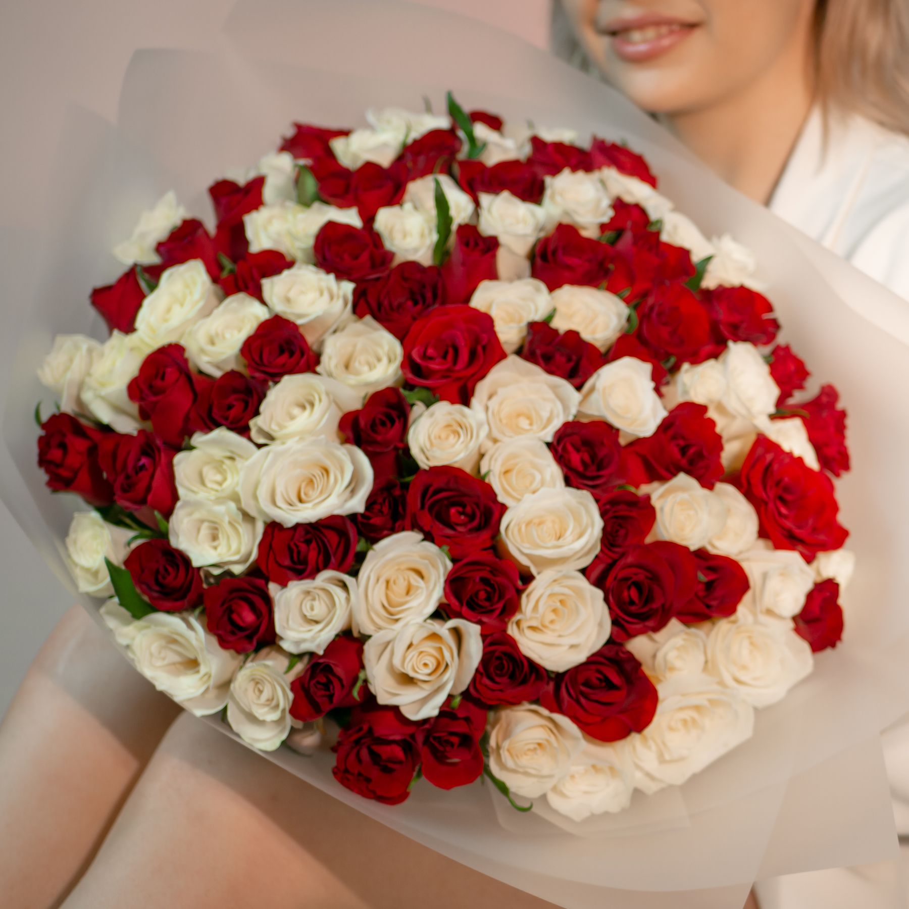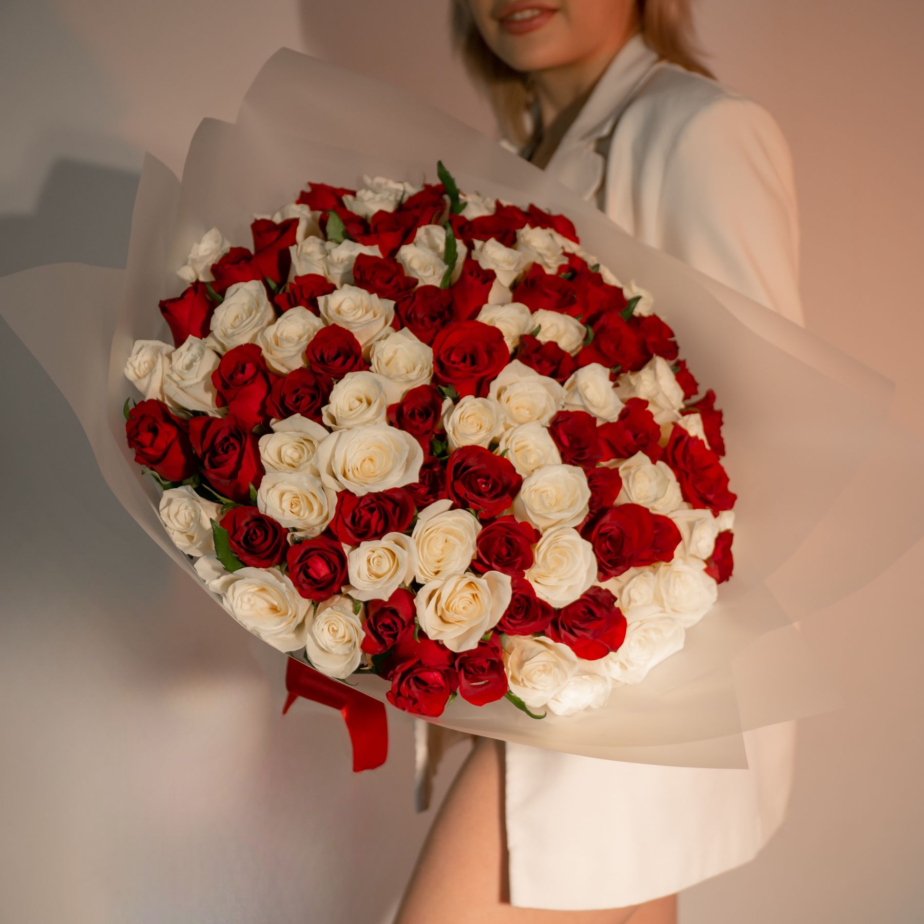 101 красно-белая роза