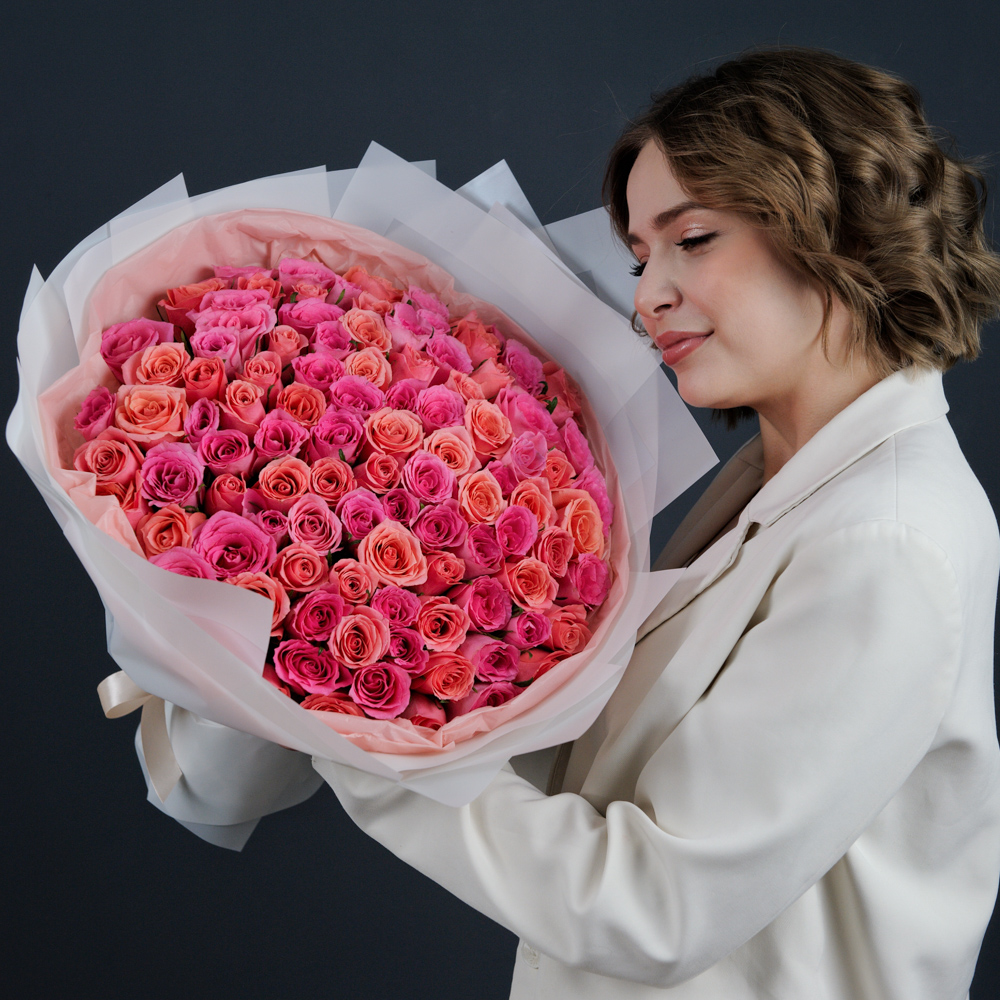 101 роза "Розовый микс"