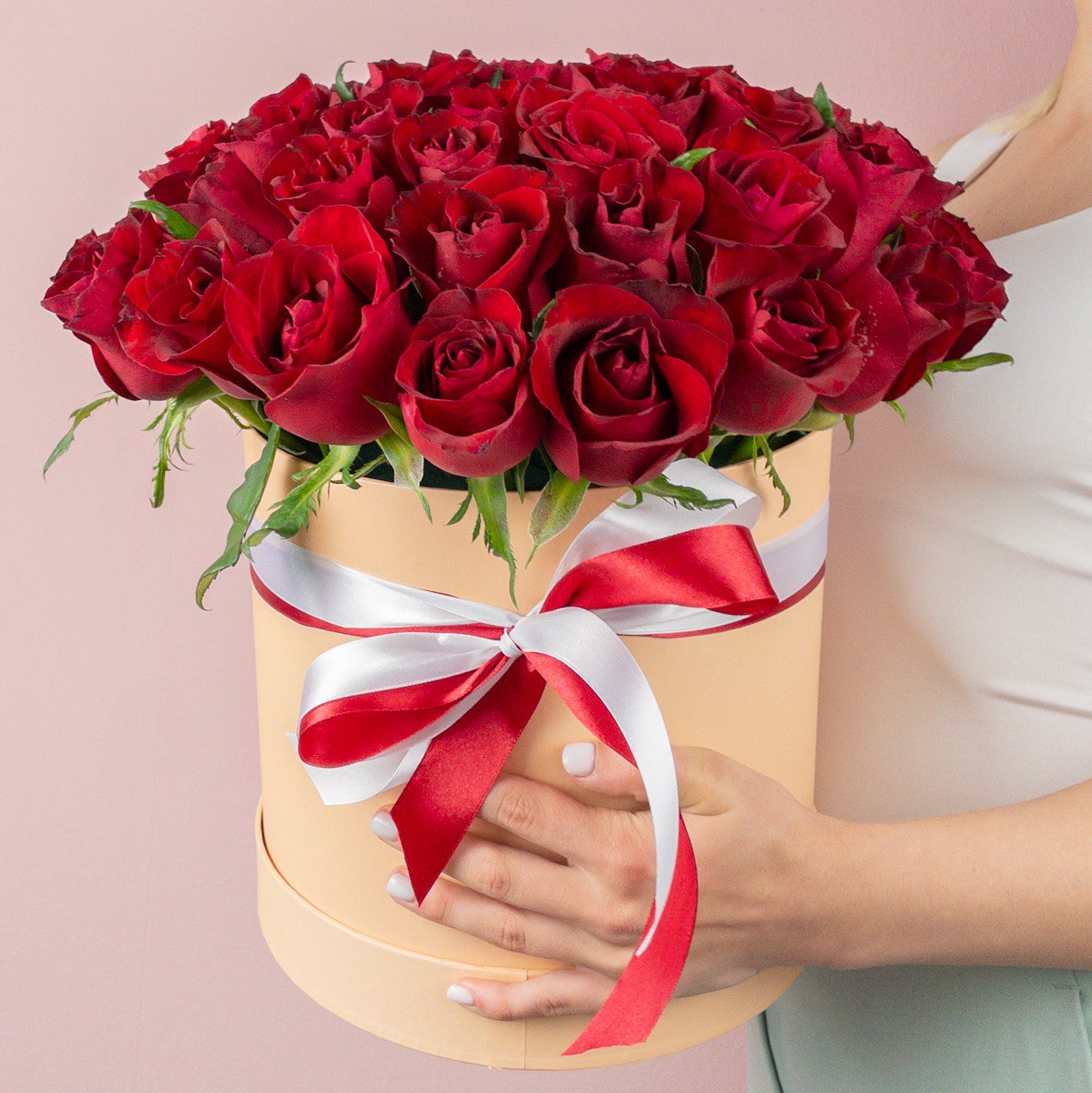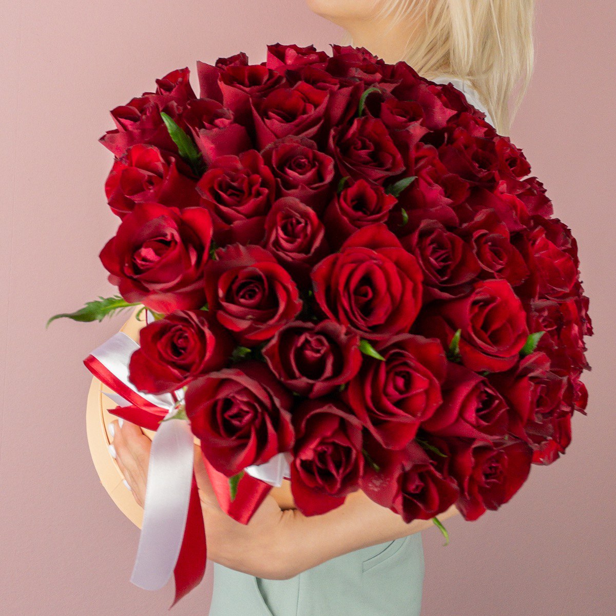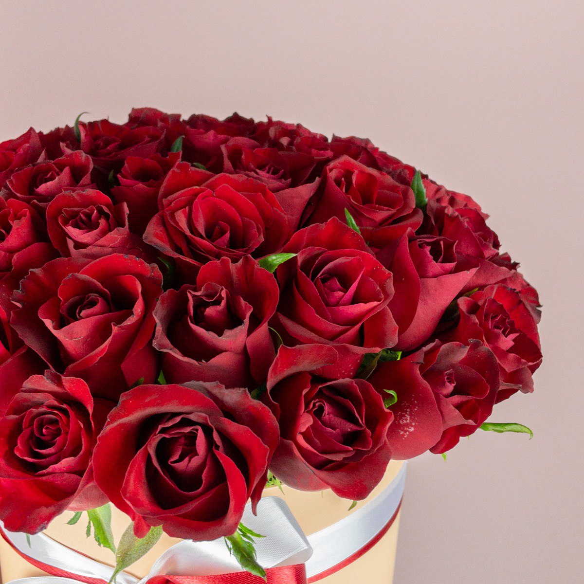 65 алых роз в коробке