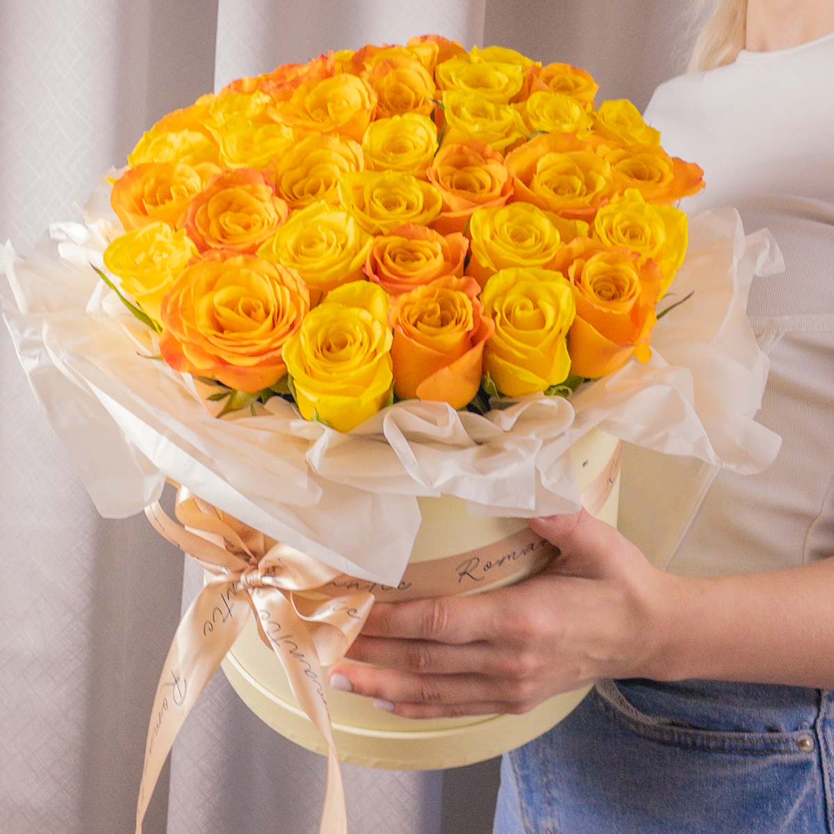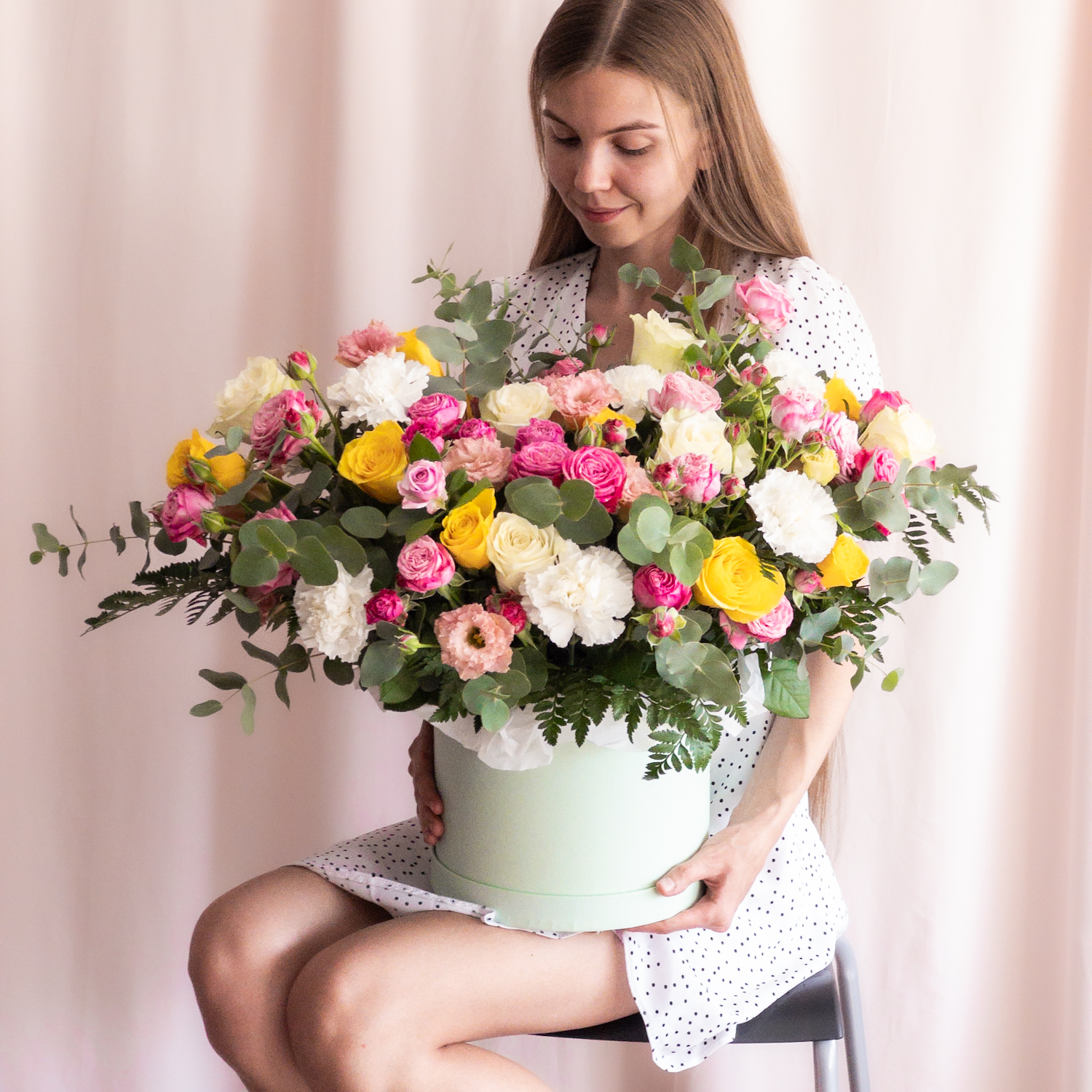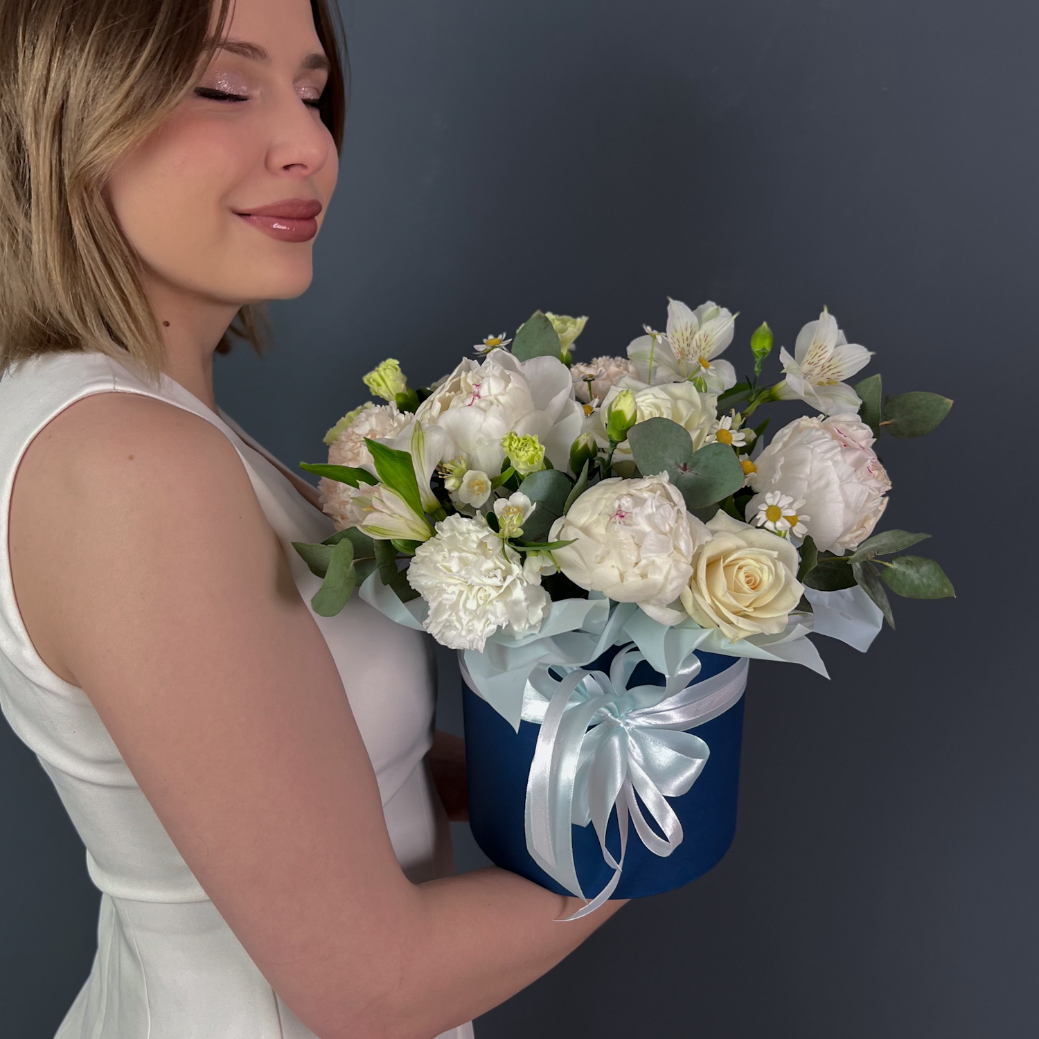 Изящный букет гипсофилы в элегантной подарочной ко...