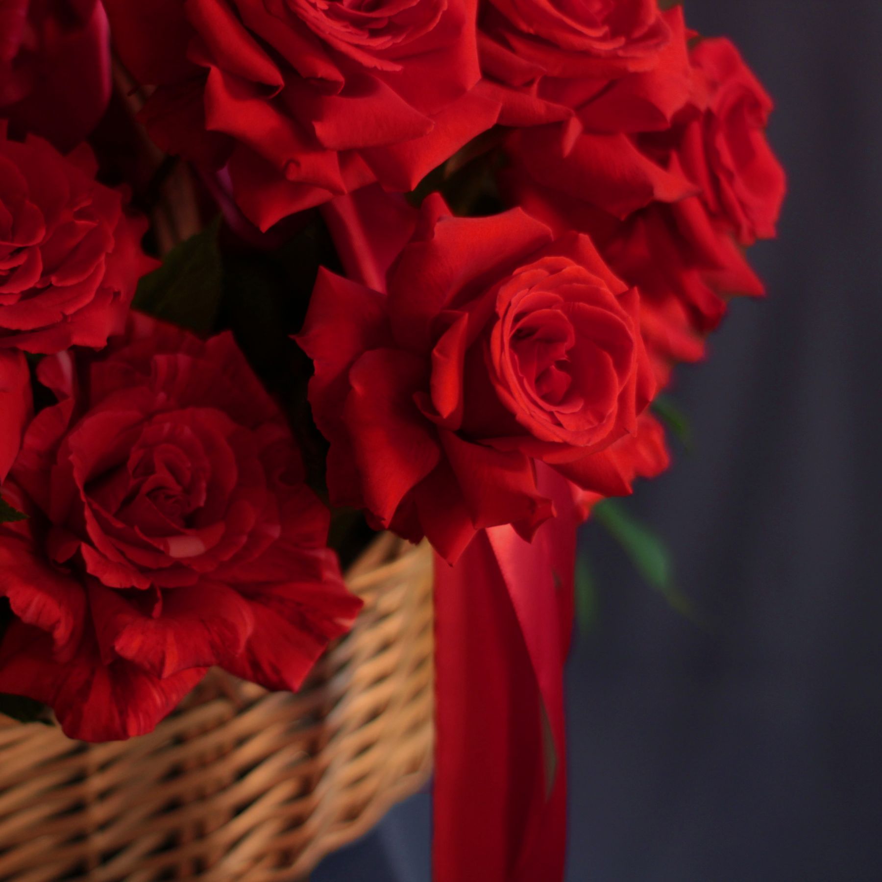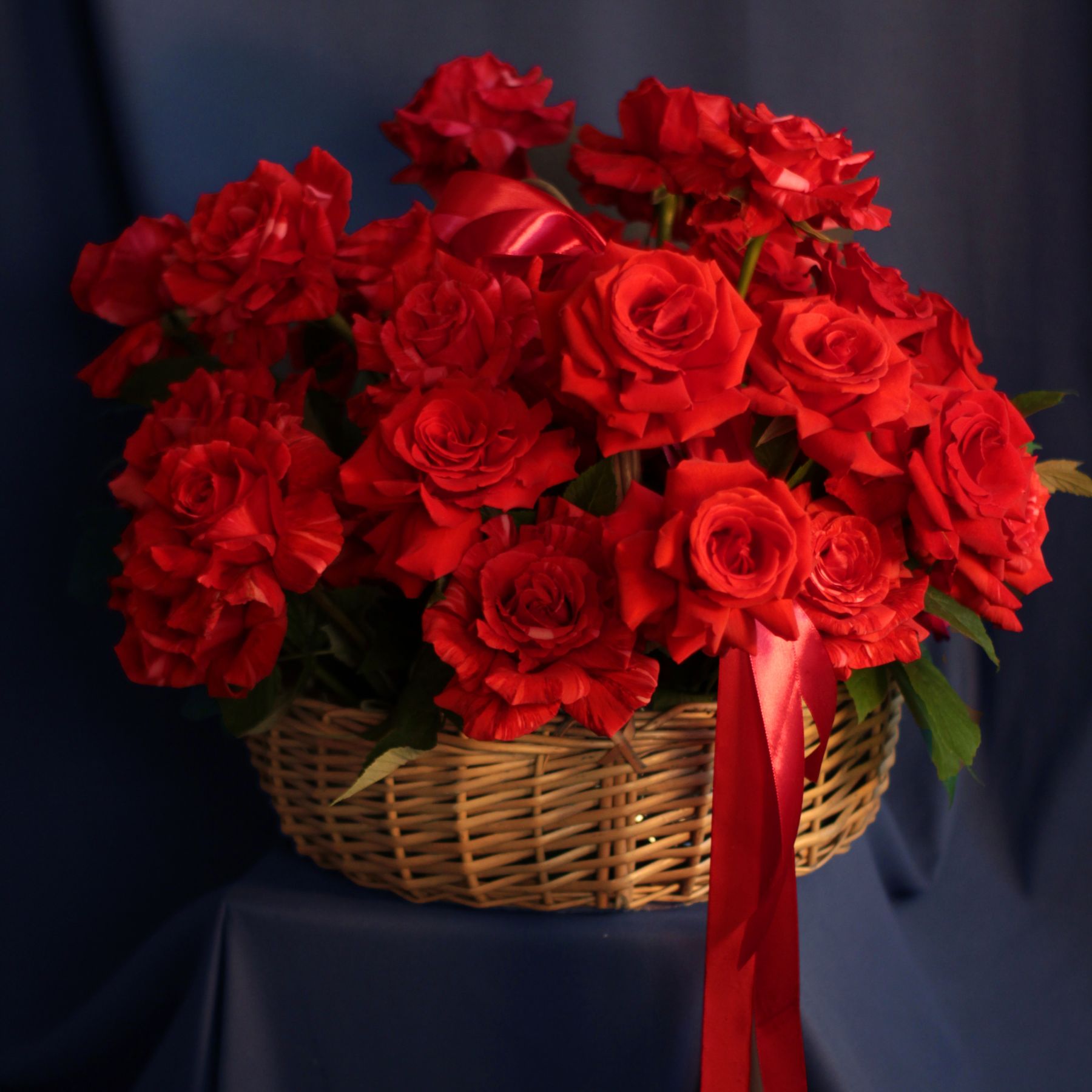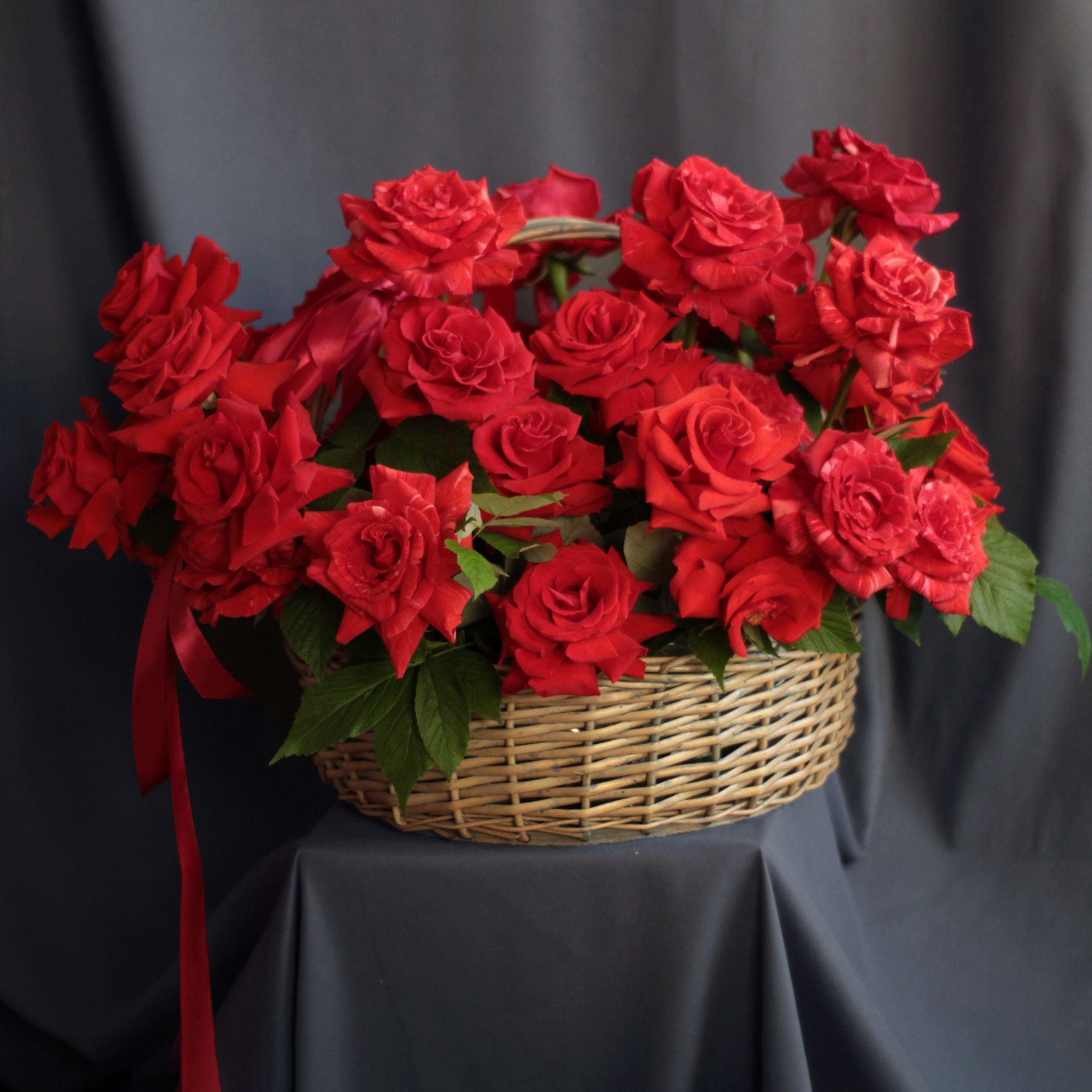 Корзина алых роз